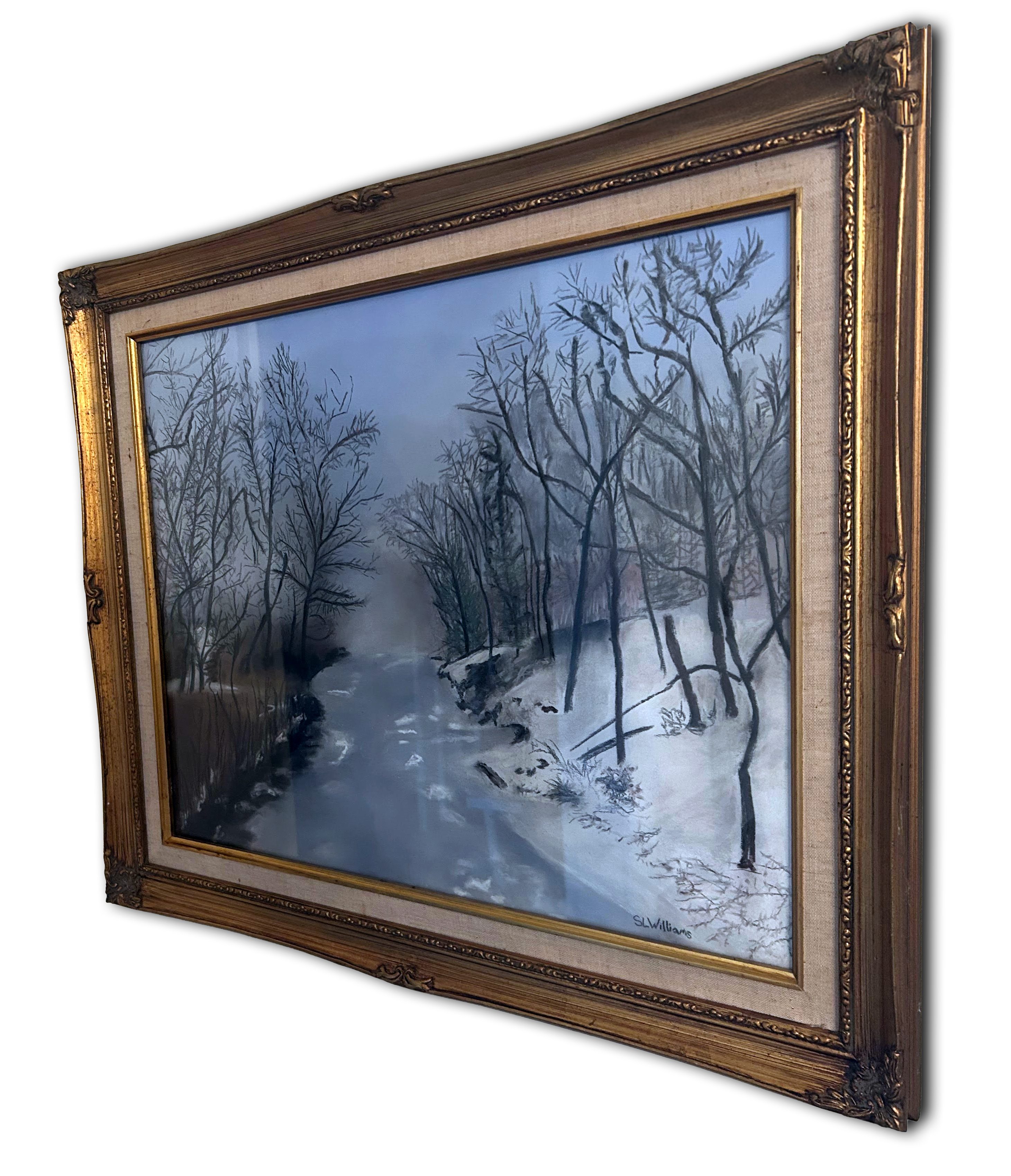 Original pastel in a beautiful vintage frame offered by local artist, Susan Williams. Direct from her studio to your home. 20" H x 24" L.