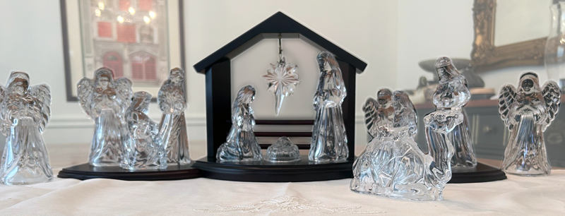 Two additional standing angels purchased separately and part of this set. These are 24% lead crystal pieces. The crystal is clear and
